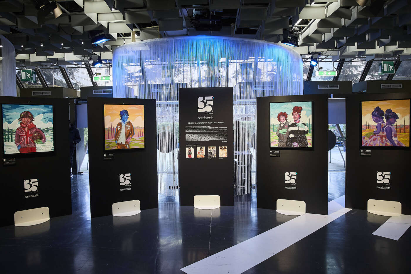 Un racconto visivo ed emozionale che ripercorre i quattro decenni di moda per bambini, attraverso quattro tele, una per ogni decade del brand – anni ’90, 2000, 2010 e 2020 -, che reinterpretano in chiave contemporanea alcune delle campagne più iconiche di Sarabanda, restituendo una narrazione fatta di crescita, cambiamento e continuità di valori.
